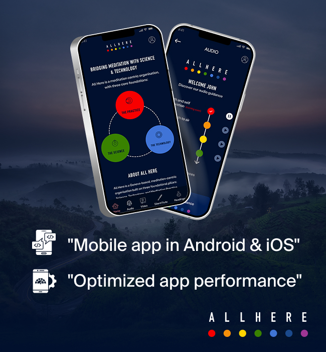 ‘All Here’ combines meditation, science, and technology to promote inner transformation and lifelong empowerment. The company focuses on helping individuals achieve mindfulness and balance through innovative practices and tools. The client approached us to create a new mobile app from scratch to expand their reach and enhance user engagement.