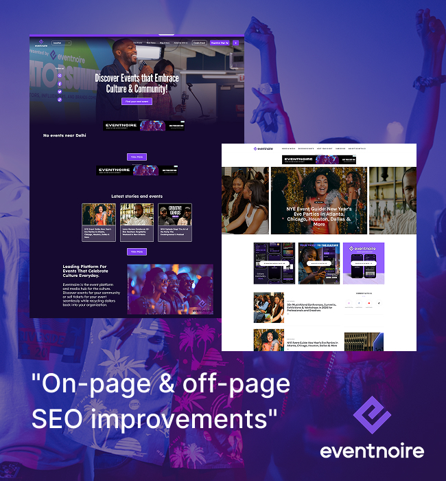 Eventnoire is a digital platform that helps people discover, promote, and attend cultural and community-focused events across different cities. It also supports event organizers by offering simple event listing, ticket selling, and community engagement in one place. The client approached us to improve online visibility, attract more visitors, and build a stronger presence on their website.