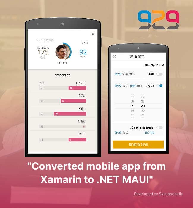 The client asked us to migrate their existing mobile application from Xamarin to .NET MAUI so the platform could continue supporting their global learning community. The application is part of the 929 project, which encourages people around the world to read one chapter of the Tanakh (Hebrew Bible) each day and access explanations, commentaries, and learning content shared by scholars and contributors.
