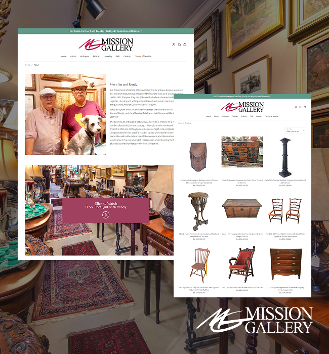 The business of antiques is not always an easy one. What’s required is a love and passion for understanding the finer details of antiques, and the effort used in their fabrication. With a dedicated team of researchers and internet salespeople, Mission Gallery Antiques is renowned in the antiques world to date, with Jim and Randy at the heart of its success.